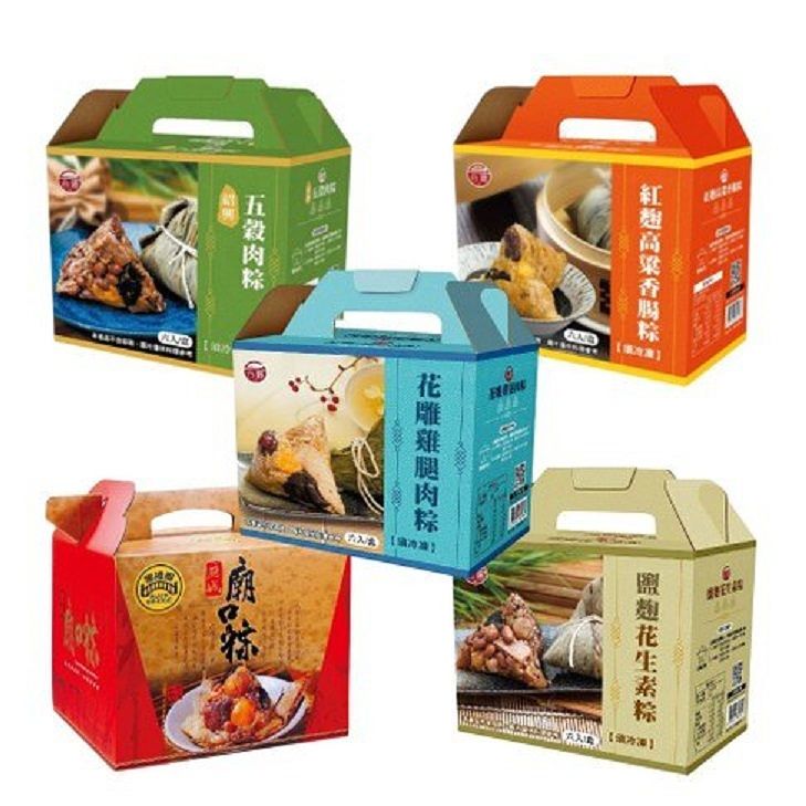 除了單顆及冷凍粽子以外,樂天市場亦精選多款禮盒,無論是自己食用或是送禮慶祝皆相宜。粽情粽意套組包含火腿粽、湖州肉粽、臘味鮮肉粽等多種口味的鹹粽,並隨盒附贈小瓶【XO麻辣醬】,超適合送禮與朋友一起分享。台酒端午節粽子禮盒組嚴選五種口味,包含台酒特有花雕雞腿肉粽與紅麴高粱香腸粽,傳統與創新口味的碰撞,每一口都能擁有大大的滿足。【紅豆食府】鮮粽禮盒嚴選少油少脂的五花肉,加入主廚秘製滷汁長時間溫火慢滷, 香蒸後糯米飯彈牙可口,肉質軟嫩適中、滷香陣陣撲鼻,是一款品味高級的傳統美粽。【蓮心粽】端午節賀禮是蓮心協會志工媽媽與身心障礙的學員一同製作的愛心粽,堅持選用頂級圓糥米,選用上好台灣豚,加上學員們的努力及參與所完成的美味粽子。