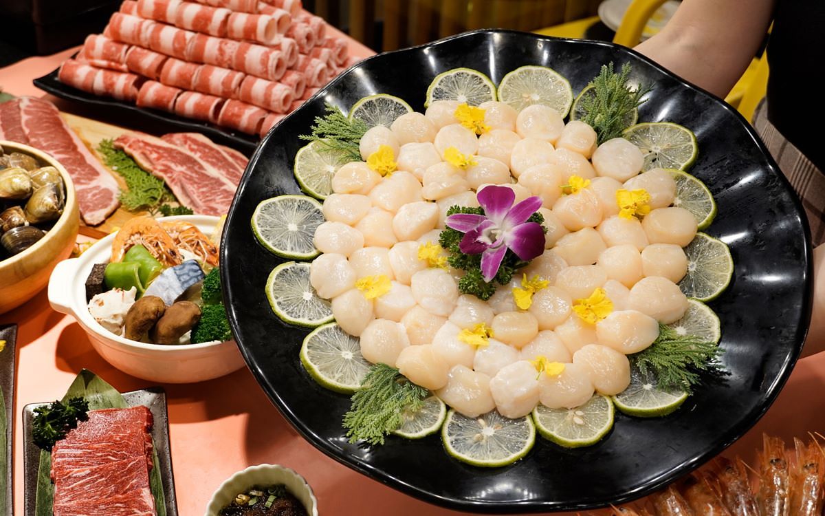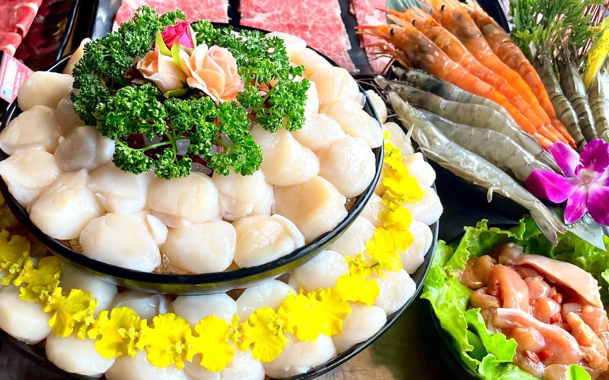 內用:只要含2成人以上同行,提前至少1日訂位,其中1人出示小黃卡(電子、紙本皆可)打滿3劑疫苗紀錄,或者身分證/健保卡含有「2、1、7」任2碼,全桌即可享肉質肥厚、口感Q脆的「九孔鮑魚」吃到飽,「新馬辣Plus+」則是端出滋味鮮甜的「北海道生食級干貝」無限量供應來應戰。同時,分享當日用餐照至粉絲團指定貼文內,還有機會抽中免費餐券!