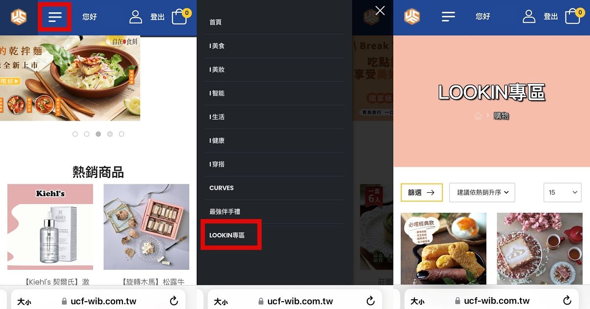 小提醒:若點開頁面不是LOOKin專區的話,可點選左上角的選單,直接點擊LOOKIN專區就找到囉!