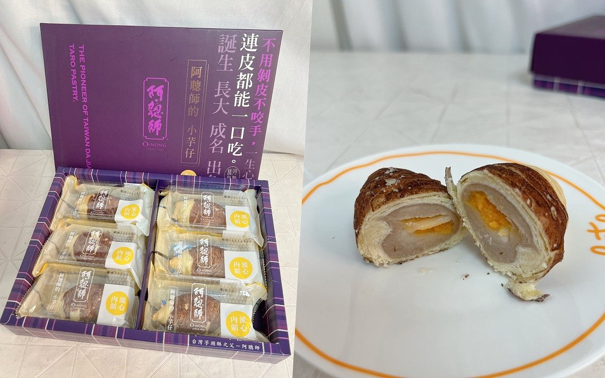 榮獲台中市十大伴手禮網路人氣獎,是台中大甲著名伴手禮之一,芋頭控都不會放過的阿聰師芋頭酥,嚴選上等芋頭,以植物油製成,純手工製作,香棉可口,甜而不膩,放進烤箱加熱過後的美味度更是直線飆升,口感鬆軟濃郁!流心內餡小芋仔則是再進化,紮實的四層口感,酥鬆的外皮包裹著芋綿密、麻糬Q、奶黃醇、流心餡,一口咬下香鹹濃郁的流心奶黃醬,頓時湧出美妙的滋味。絕對是芋頭控不能錯過的完美組合!
