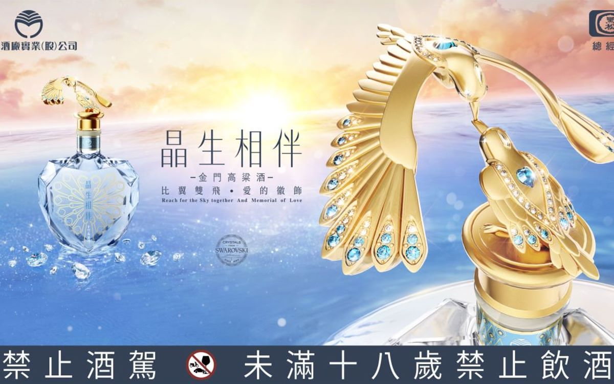 110顆施華洛世奇水晶鑲嵌!首支可盤旋舞動的金門高粱酒「神話愛情鳥」限量販售