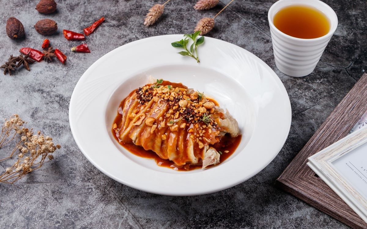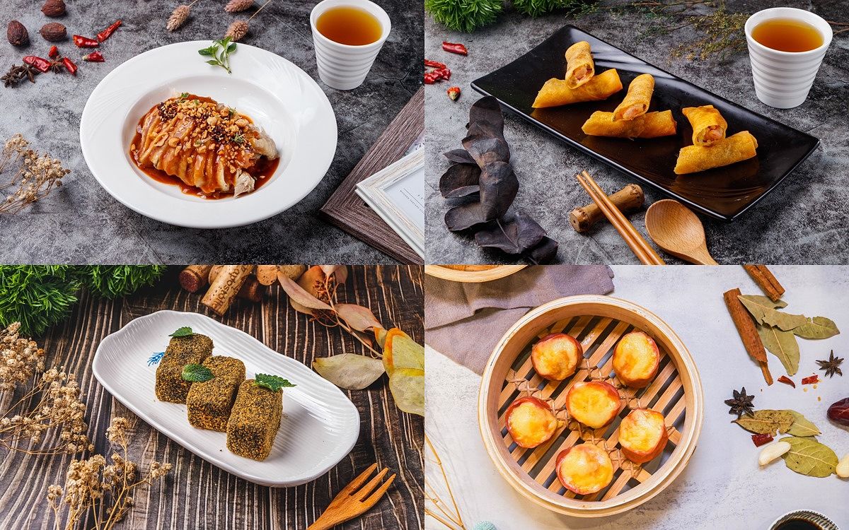 為了讓饕客享用美食不單調,特別加入經典與創意中菜,首次來店必吃試營運廣受好評的「口水雞」,軟嫩的雞腿肉淋上獨家調配醬汁,濃郁的芝麻醬帶點微辣特調超級下飯!「柚香油爆蝦」改良上海油爆蝦,添加柚香醬做變化,冷盤呈現,顛覆傳統味道,令人驚艷!「迷迭鮮蝦捲」將Cream cheese拌入蝦子、迷迭香包進港式春捲皮中,熱鍋油炸,沾上塔塔醬,入口酥脆隨即散發迷迭香香氣,讓舌尖享受異國風情。還有古北饕旗艦店的獨家甜點「這不是豬血糕」!曾有饕客品嚐後笑稱是「被湯包耽誤的甜點店」,以西點牛奶慕斯的手法製作,外層撒上花生和芝麻,加入些許檸檬皮增添香氣,搭配自種檸檬香蜂草一同入口,外型雖像豬血糕但口感類似雪花糕,多層次的香氣於口中繚繞,為這場美味之旅畫下完美句點。