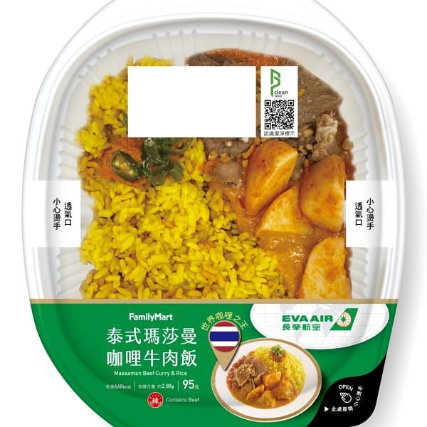 「全家」與長榮航空聯名推出四款道地的咖哩美食,「泰式瑪莎曼牛肉咖哩飯」以有咖哩之王美譽的瑪莎曼咖哩為延伸開發,以品牌獨門咖哩為基底,加入溫潤的洋蔥醬體進行提味,再佐上鬆軟馬鈴薯塊及軟嫩牛肉片,口感濃郁溫醇,層次豐富,售價95元;「泰式綠咖哩嫩雞燴麵」則以超人氣泰國COCK青咖哩為基底,加入椰漿增添濃郁滑順口感,搭配醃漬嫩烤雞胸肉片及馬鈴薯塊,帶出正統泰式微辣微甜的風味,售價99元。