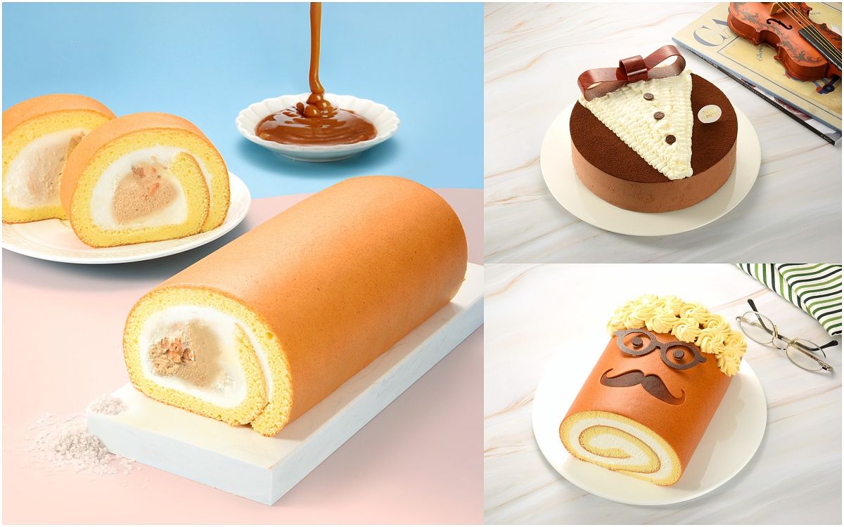 再推將經典生乳捲放大的「翹鬍子偶爸爸」,生乳捲以氣質書卷味的爸爸造型呈現,逗趣可愛的造型絕對能討爸爸歡心!