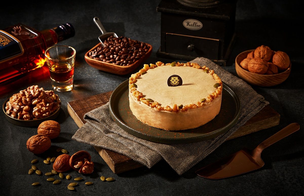 起士公爵「曼特寧威士忌乳酪蛋糕」以12年純釀威士忌與100%阿拉比卡深烘焙咖啡,佐以濃郁乳酪及滑順細緻的咖啡生乳,完美融和了威士忌酒香、咖啡苦韻,搭配天然鮮脆的南瓜子仁、核桃點綴裝飾,內餡驚喜則是放入香甜軟糯的糖漬粟子,入口即化鬆軟綿密,獨特口感讓人回味再三!
