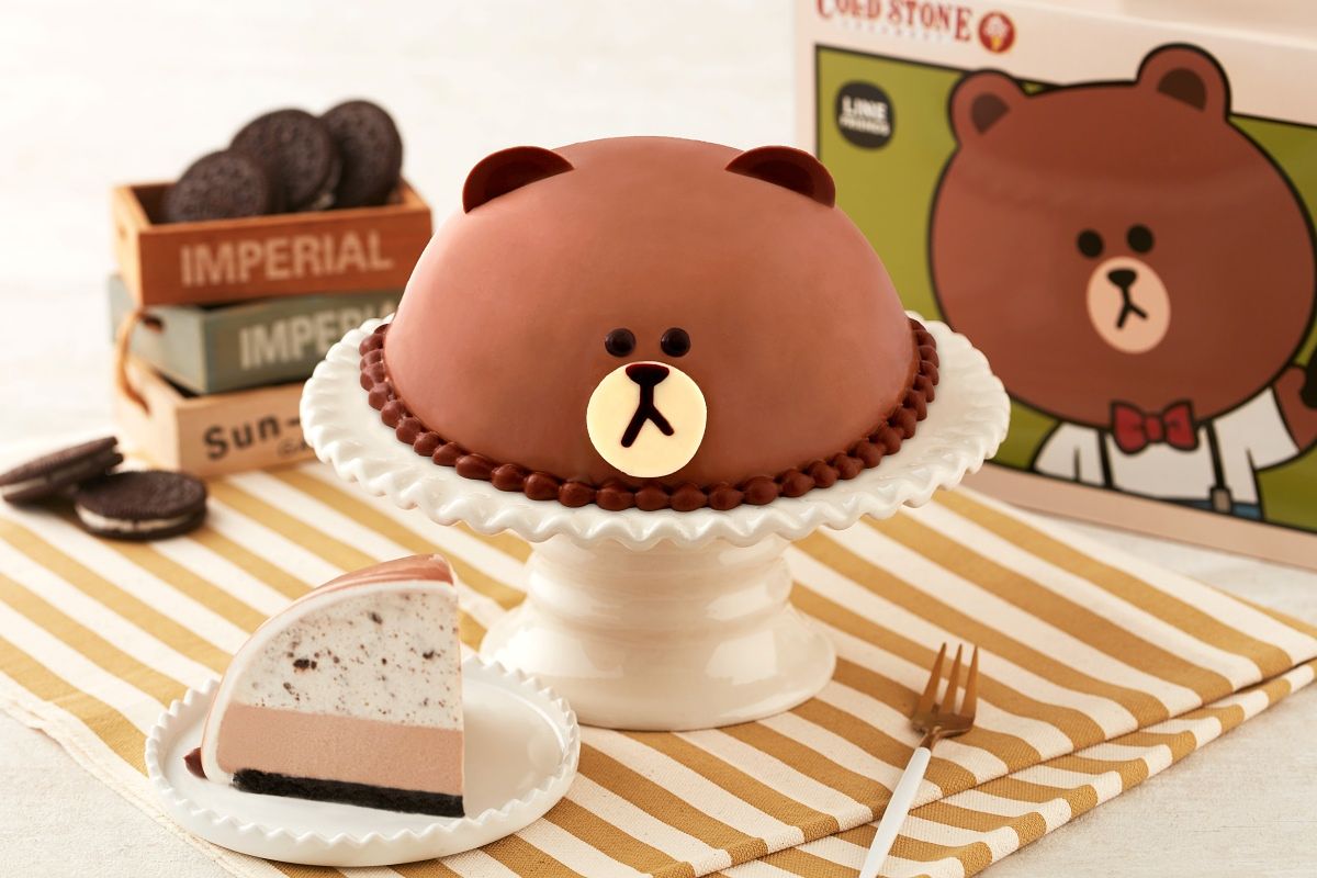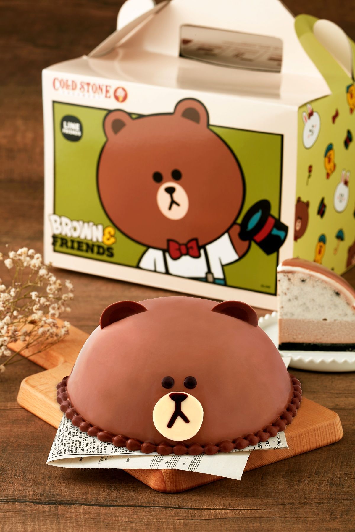 COLD STONE攜手LINE FRIENDS推出父親節冰淇淋蛋糕,超人氣巨星「熊大」造型的蛋糕,使用酷聖石招牌香奶冰淇淋拌入OREO餅乾,搭配濃郁巧克力冰淇淋,最後底層使用巧克力海綿蛋糕,一口咬下一次擁有多層次的豐富口感。熊大的180度頭型蛋糕,可愛零死角!