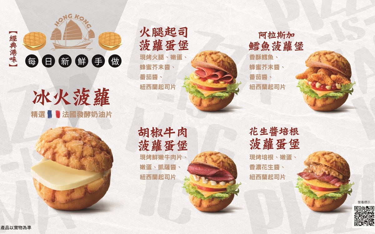 必勝客曾在多年前推出期間限定「菠蘿芝心餅皮」,當時創下爆量熱烈好評,更有許多饕客敲碗期盼回歸!這次Pizza Hut EXPRESS不僅開賣港式茶餐廳必吃的「冰火菠蘿」,更把早餐漢堡全面升級為獨步全台的「菠蘿堡」,共4款口味:「火腿起司菠蘿蛋堡」單點價79元,「胡椒牛肉菠蘿蛋堡」、「花生醬培根菠蘿蛋堡」、「阿拉斯加鱈魚菠蘿堡」等3款單點價皆為89元,每日限量供應。外酥內軟、口感香甜的每日手工現做菠蘿堡體,與豐盛食材巧妙結合,讓美味更添豐富層次。早餐加價10元還可升級套餐,搭配「鹹檸七」等多款飲料。就讓必勝客EXPRESS用正宗港味喚醒你的早晨,開啟美好的一天!