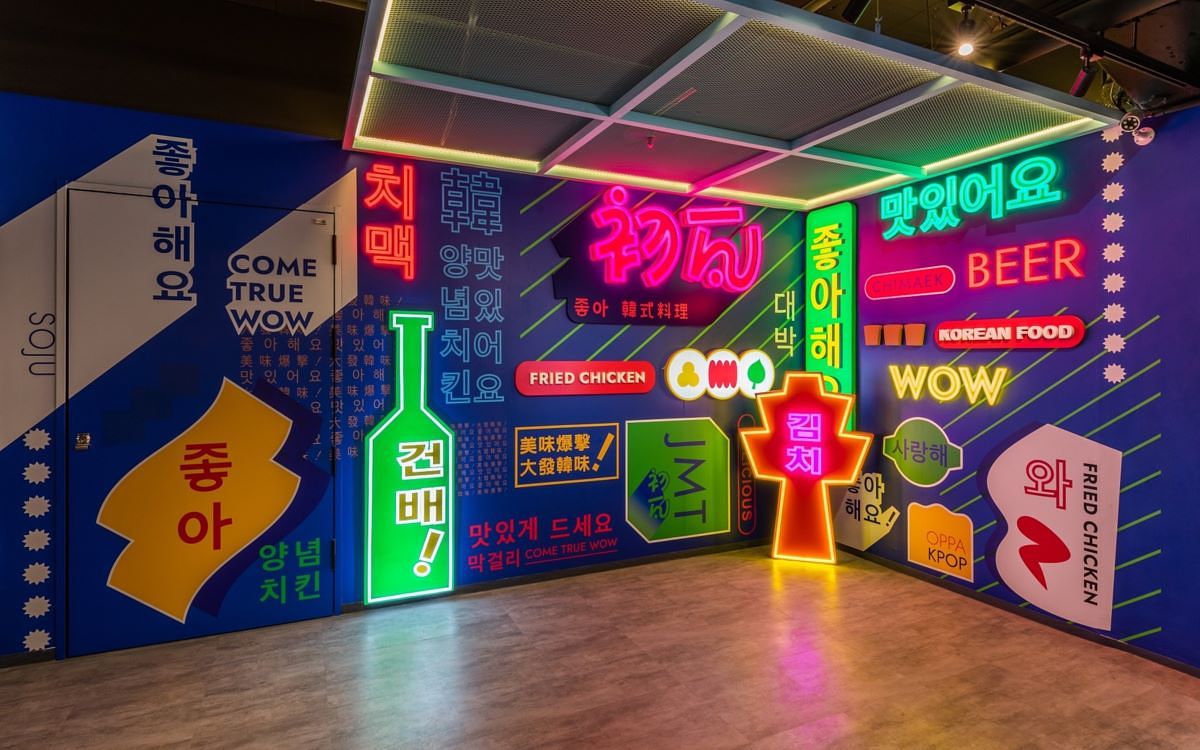 「初瓦 韓式料理」首店進駐台北西門町鬧區,鎖定年輕族群、時尚餐飲市場,平均客單約在500~600元;全店共109坪,設有104個座位、及2個小型包廂,提供不打擾的聚會需求。室內設計採用代表韓國的紅、藍為品牌識別色,加上大膽撞色呈現潮流感,和大面積打卡牆,滿足年輕客群的社群拍照需求。為了彰顯細節差異,「初瓦」在經營型態上跳脫傳統韓式餐廳模式,首創日夜不同餐點與服務氛圍,白天供應經典韓食,提供多人套餐及單點為主。華燈初上、九點之後則複製韓國夜生活情境,主打現場燈光氛圍變化,還有韓國時下青少年風行的酒桌遊戲拉近客人互動,搭配韓國街頭常見的布帳馬車美食:炸彈酒、燒啤、馬格利等,讓人體驗百變韓國風情。