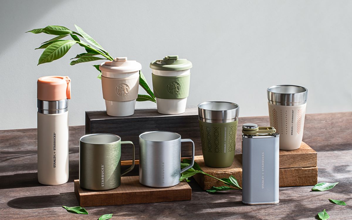 近來興起戶外野營風潮,本次檔期星巴克以山林體驗等戶外風潮為靈感推出系列新品,顏色選用橄欖綠、米色與灰色等自然帶點質樸的色系,設計運用簡潔的線條,帶來多款不鏽鋼杯、不鏽鋼水瓶(壺)等實用的器具,不僅如此,還有底色以橄欖綠色、沉穩藍色,搭配經典菱格紋設計,帶來典雅而簡約的包款與提袋,也十分推薦,同步於7月20日上市。