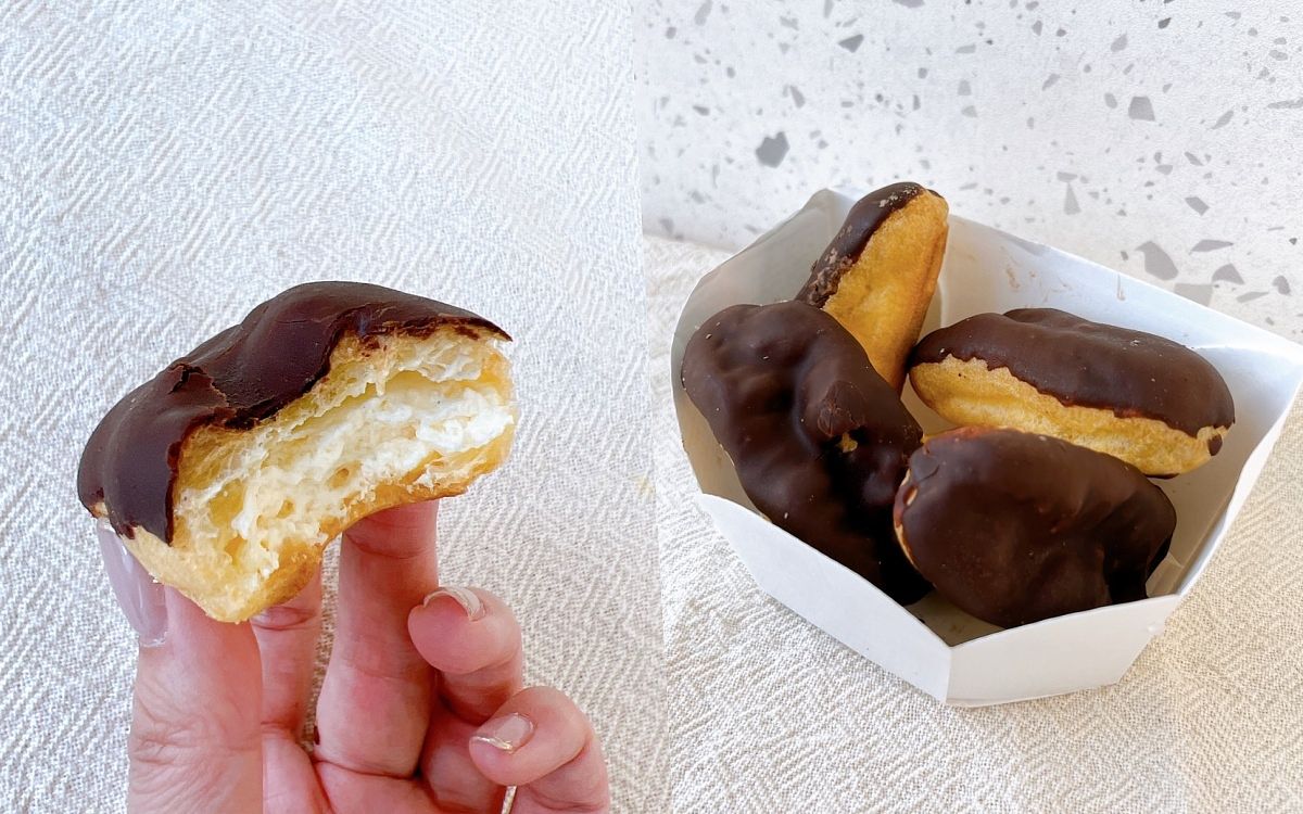 巧克力控必選這款!長型泡芙外皮包裹大量巧克力,為香濃美味不甜膩的泡芙增添層次與口感。鮮奶油內餡柔軟絲滑,與微苦的巧克力交融非常完美!