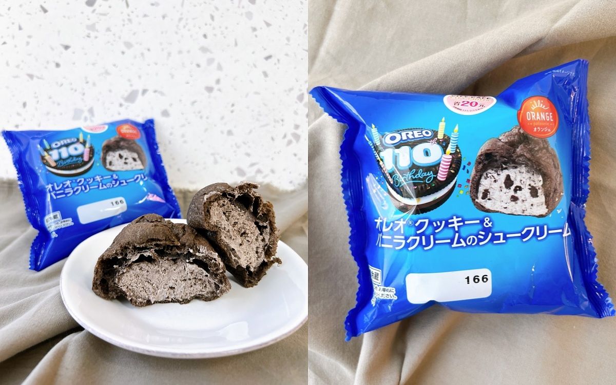 日本進口OREO110週年生日慶限定3款冷藏甜點,以卡士達鮮奶油與香草鮮奶油混合出的特製內餡,並將大量OREO餅乾拌入打造多層次口感。炭黑的泡芙外皮包裹特製內餡,泡芙的口感,吃起來卻是OREO的絕妙滋味。
