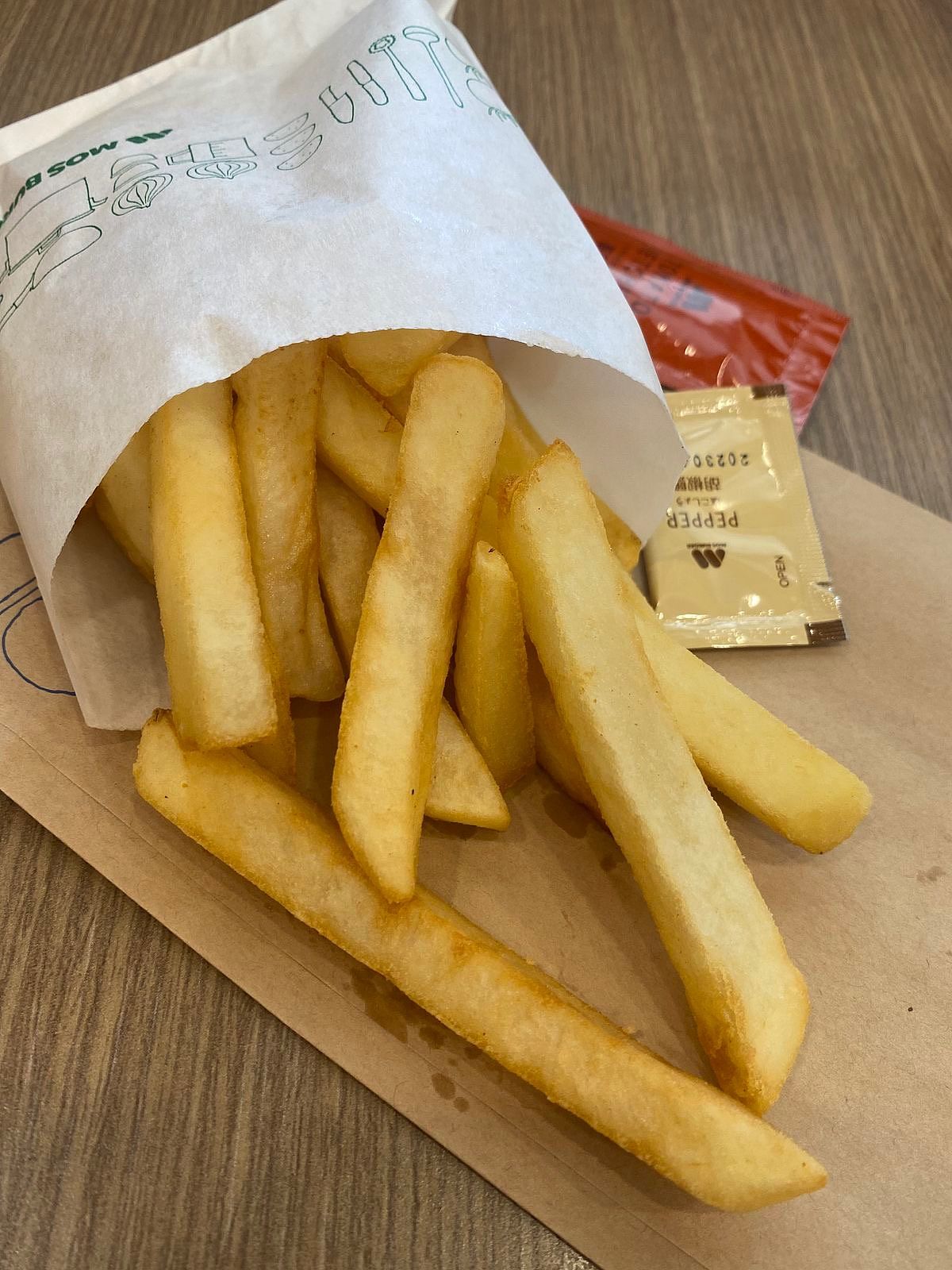 它同時也是原始調味最清淡的薯條,如果偏好鹽味不那麼重的薯條,摩斯的薯條直接吃就超好吃,喜歡地瓜的朋友還可以選擇摩斯黃金地瓜薯哦。