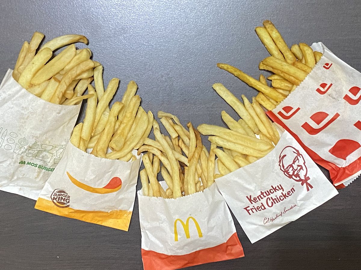 談到薯條,大概大部分朋友們心目中第一名的薯條都是麥當勞薯條。實際上比較了一下,麥當勞薯條同時也是五家速食店當中最細的一家,而且粗細差距頗大,幾乎快要到別家的二分之一,不知道是不是這樣的不同變化導致壓倒性的多數支持?
