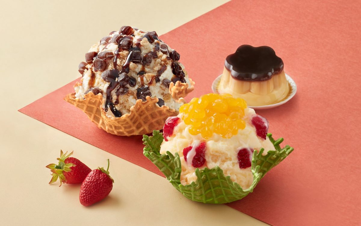 「珍的有布丁」使用統一布丁入冰製作,搭配香奶冰淇淋基底,完美呈現經典國民甜點香濃奶香與令人難忘的統一布丁焦糖風味,襯上黑糖醬、撒上黑糖珍Q宛如一碗冰淇淋版本的統一布丁,讓你一吃就上癮!「芒果之煉」搭配哈密瓜脆餅,如同甜點「哈密瓜水果甜點」芒果雪貝拌入草莓,擺上Q彈芒果風味晶球,淋上香甜鮮乳煉乳,最後與哈密瓜脆餅一同享用的絕妙搭配!層層配料、水果,豐富滋味層次分明,顏色鮮艷、好吃又好拍!