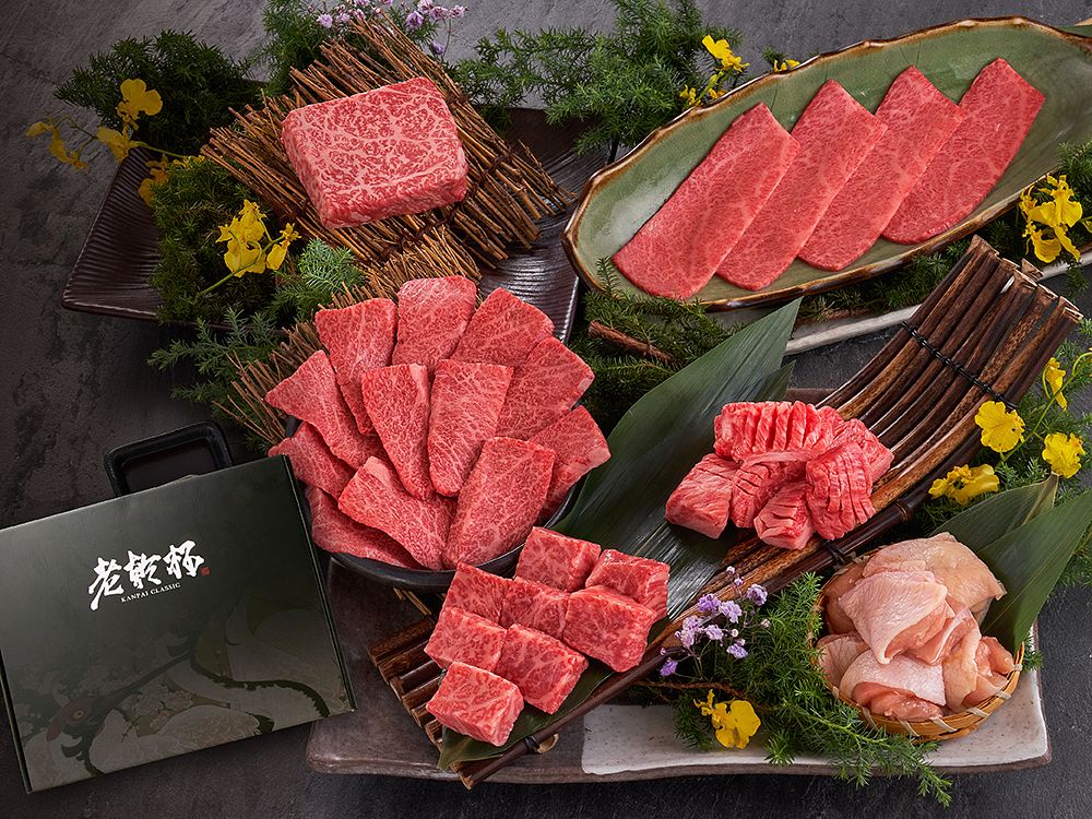 王品今年新開幕的頂級燒肉餐酒館品牌「最肉」,推出限量500組的「重磅和牛燒肉禮盒」,包含鮮甜不膩、肉汁滿溢的美國櫻花和牛肋條,產量珍稀、僅有5%澳洲和牛獲此認證的澳洲全血和牛牛舌,以及油花豐美、入口即化的日本A5和牛翼板,一次集齊8款純手工精修的奢華肉品。搭配獨家以分子料理概念創作的醬油慕斯、清爽解膩的檸檬蔥鹽。