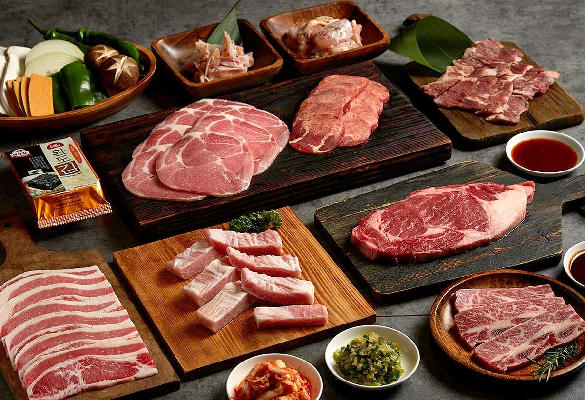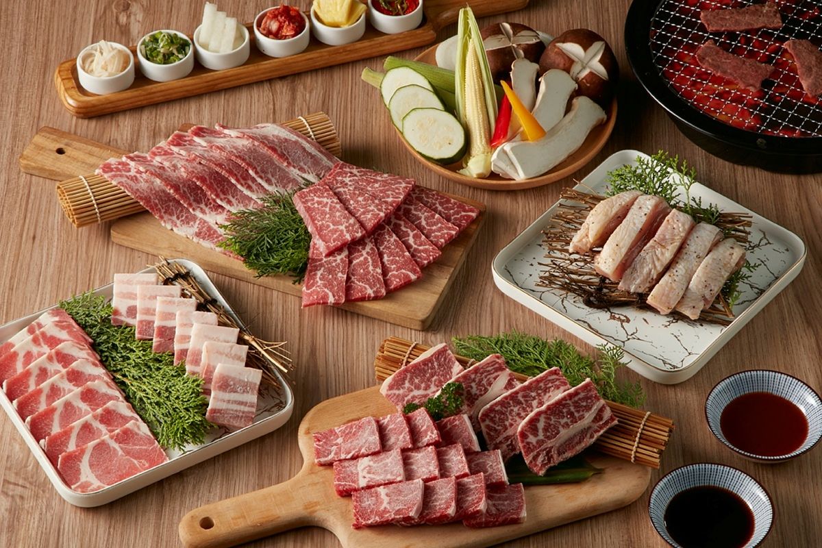 中秋限定「原燒烤運亨通烤肉組」,嚴選美國肋眼牛排、極上牛肋條、厚切伊比利豬梅花等8款人氣燒肉,肉品總重超過1公斤。烤肉組均附季節野菜與韓式泡菜、糯米辣椒醬等漬物六小幅,肉類、蔬菜、配料一應具全!