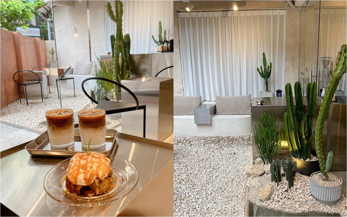 帶著韓系咖啡廳感覺的[UNO ONCE COFFEE]整體裝潢都非常俐落、幾何的結合,冷調性的家俱與餐盤都是統一風格,仙人掌真的很可愛很療癒。焦糖海鹽戚風切好一次一口的大小,濃郁的奶蓋相加上焦糖海鹽的風味,搭配冰拿鐵真的是好吃到停不下來,沒有拍到的潛艇堡,剛烤上熱熱的吃超幸福,對於想吃鹹食的話也推薦喔!(行銷企劃副理Pobbi)
