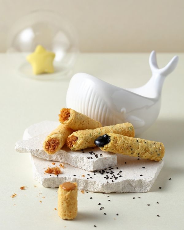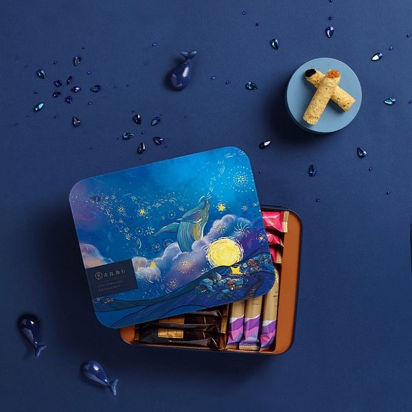 人氣超夯的創意蛋捲名店-青鳥旅行,推出了24入的「喚月鯨辰綜合灌餡蛋捲禮盒」,除了大家熟知的經典口味肉鬆、花生、芝麻內餡外,額外增加呼聲極高的四款蛋捲,「伯爵真巧」使用英國品牌TWG的伯爵茶,優雅茶香在口中蔓延;「鐵觀音真巧」使用在地鐵觀音,吃起來有濃厚微澀的茶味;「抹茶真巧」帶有濃郁苦甜的大人風味;「醇黑真巧」使用85%的比利時黑巧克力,醇厚的苦甜層次吃起來不膩口,微波後讓內餡融化會更好吃!