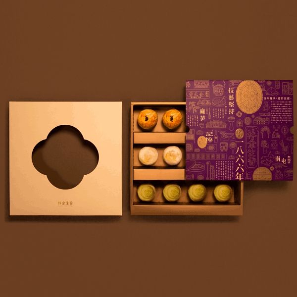 南屯老街中傳承飄香百年的老餅店,這次推出12入的中秋禮盒,一次可以吃到三種最熱門的口味,分別是金黃酥脆外皮的「蛋黃酥」,鹹香的蛋黃搭配上濕潤紅豆泥,其口味收服許多老饕的心;蹦出新滋味的「麻芛松子酥」,結合台中特色食材-麻芛,微微的青草味配搭上松子仁的堅果果香,想嘗鮮的你不仿試試;豐富奶香風味的「小月餅」,扎實濃郁的口感讓人一口接著一口!