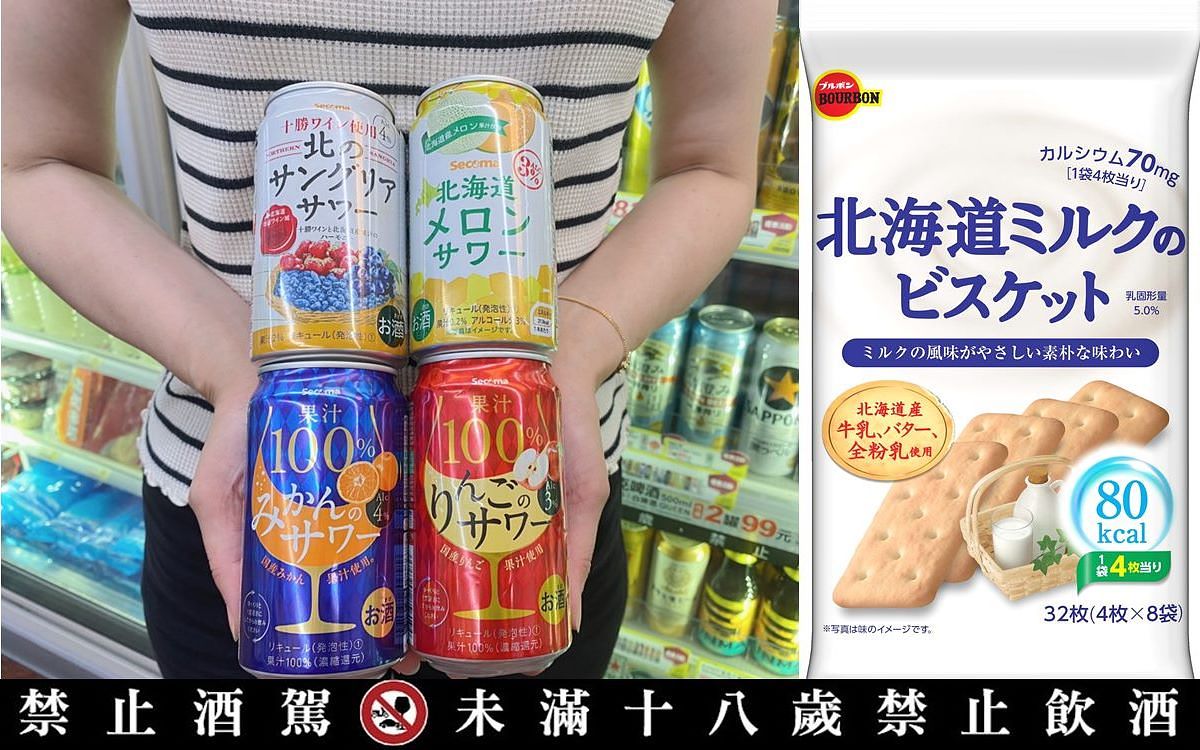 圖片來源:7-ELEVEN 觀察到民眾健康意識抬頭,7-ELEVEN限定販售「Bourbon北海道牛奶風味餅乾」(109元),嚴選北海道牛奶製成,每包僅80大卡;而「北海道酪農鹹味英文字母餅乾」則使用北海道小麥粉製成,以英文字母造型增添趣味性,為消費者輕零食新首選!而酒類也以「SECOMA北海道哈密瓜沙瓦調酒」領軍,搭配「SECOMA北方的水果調酒沙瓦調酒」、「SECOMA蘋果沙瓦調酒」、「SECOMA蜜柑沙瓦調酒」共推出4款風味調酒(89元),預計以滿滿的異國風獨家食飲組合,讓消費者就近嘗鮮、輕鬆省荷包!