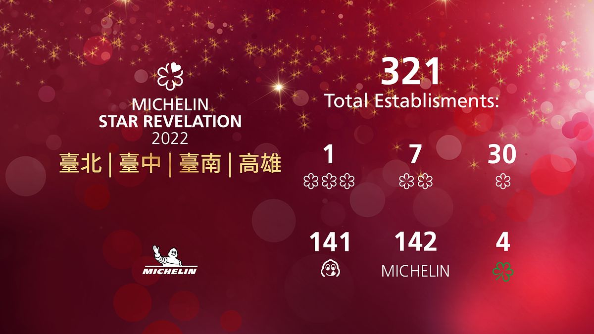米其林今天公布《臺北、臺中、臺南 & 高雄米其林指南 2022》完整名單。本回首次納入台南、高雄兩座新城市,7間餐廳新入選一星,三星由君品酒店的粵菜餐廳頤宮蟬聯!