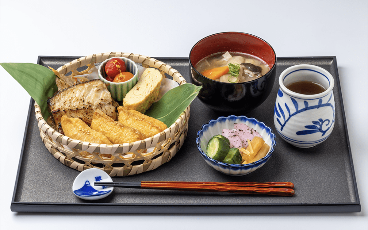 特選來自京都府的豆皮製作稻荷壽司,宮崎縣的黃色柚子散發淡雅果香,豆皮滋味清爽,配搭出黃金比例的好味道,令人忍不住一口接一口!鮭魚、鯖魚、豬、雞(店家每週任選一款)使用主廚特調京都風白味噌醃製,風味甘鹹味醇,經煎烤後滋鮮味香,滿足了對京都記憶中的味蕾。再佐以當日三款小菜及當日三款漬物。此外,建長湯(日式蔬菜味增湯)是屬於精進料理的一種,以根莖類為主製成的湯品。白蘿蔔、紅蘿蔔、牛蒡等的根莖類當主要食材,再搭配大量昆布高湯熬成無負擔又暖心非常滋味的湯。