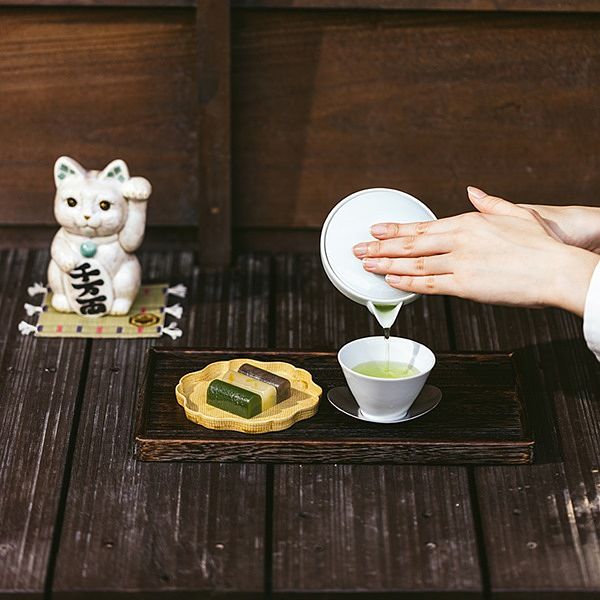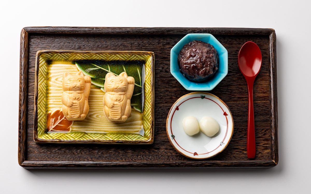 在日本開模製作「招財貓」、「茶壺」餅殼,可愛的外型讓人心都融化了!由消費者自己動手將紅豆餡、白玉分別放入招財貓餅殼,抹茶餡、白玉放入茶壺餅殼,充滿DIY的玩味樂趣。一口咬下,輕薄細緻且充滿米香的酥脆餅殼在口中化開,視覺及味覺都非常療癒。