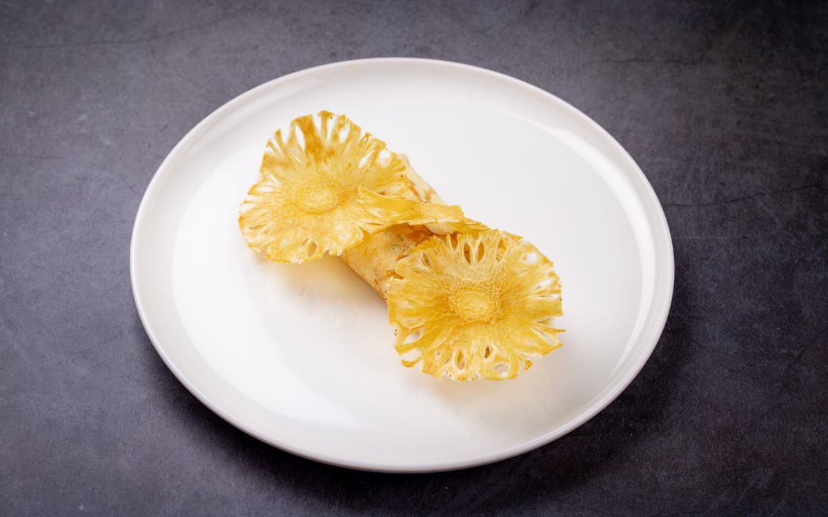 嚴選台灣新鮮鳳梨,將鳳梨切成丁與香草籽一起翻炒,搭配獨家自製鳳梨醬及令人魂牽夢縈的起司餡,最後佐上風乾鳳梨片做為裝飾,鹹鹹甜甜的獨特口感,讓人一吃就愛上。