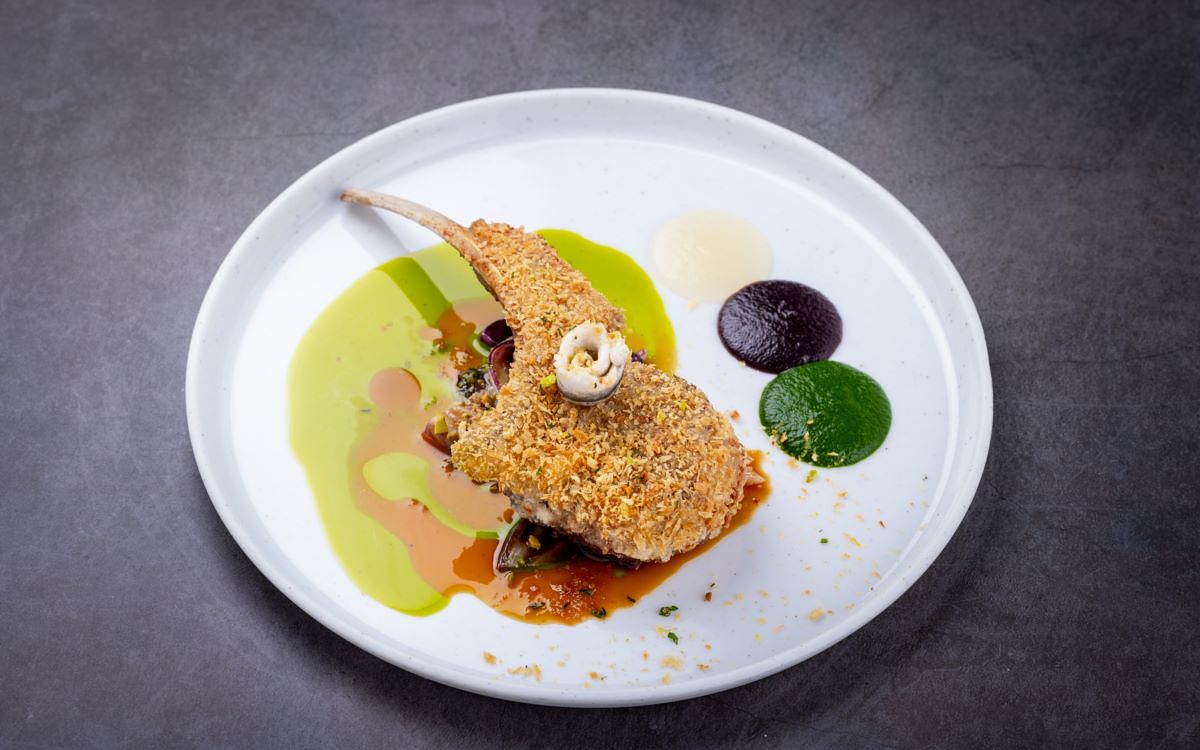 紐西蘭羊排 / 青蘋果 / 菊苣 / 菠菜 / 開心果麵包粉