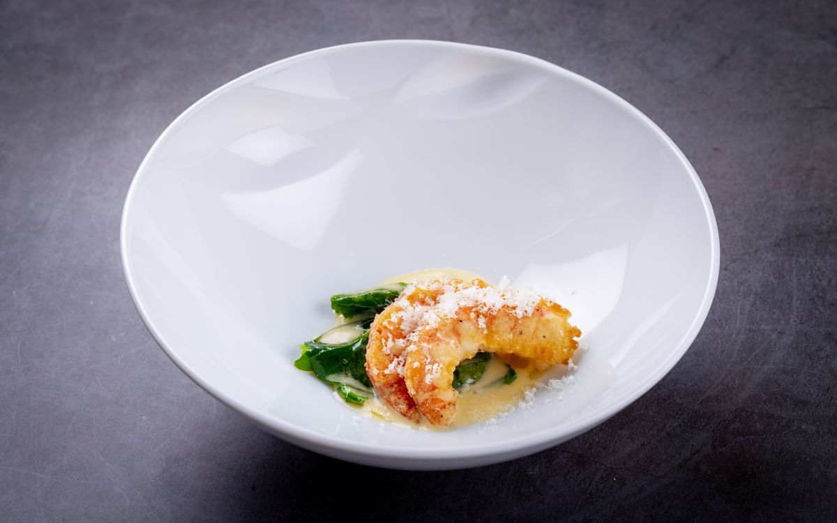 天使紅蝦 / 菠菜 / 酸豆奶油