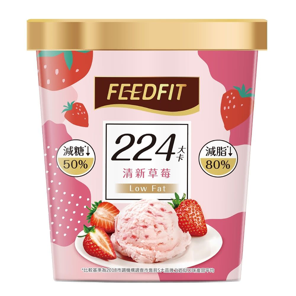 FEEDFIT輕享系冰淇淋一杯僅有224大卡,主打低熱量輕負擔,口感酸甜適中,充分展現草莓清新自然的風味。