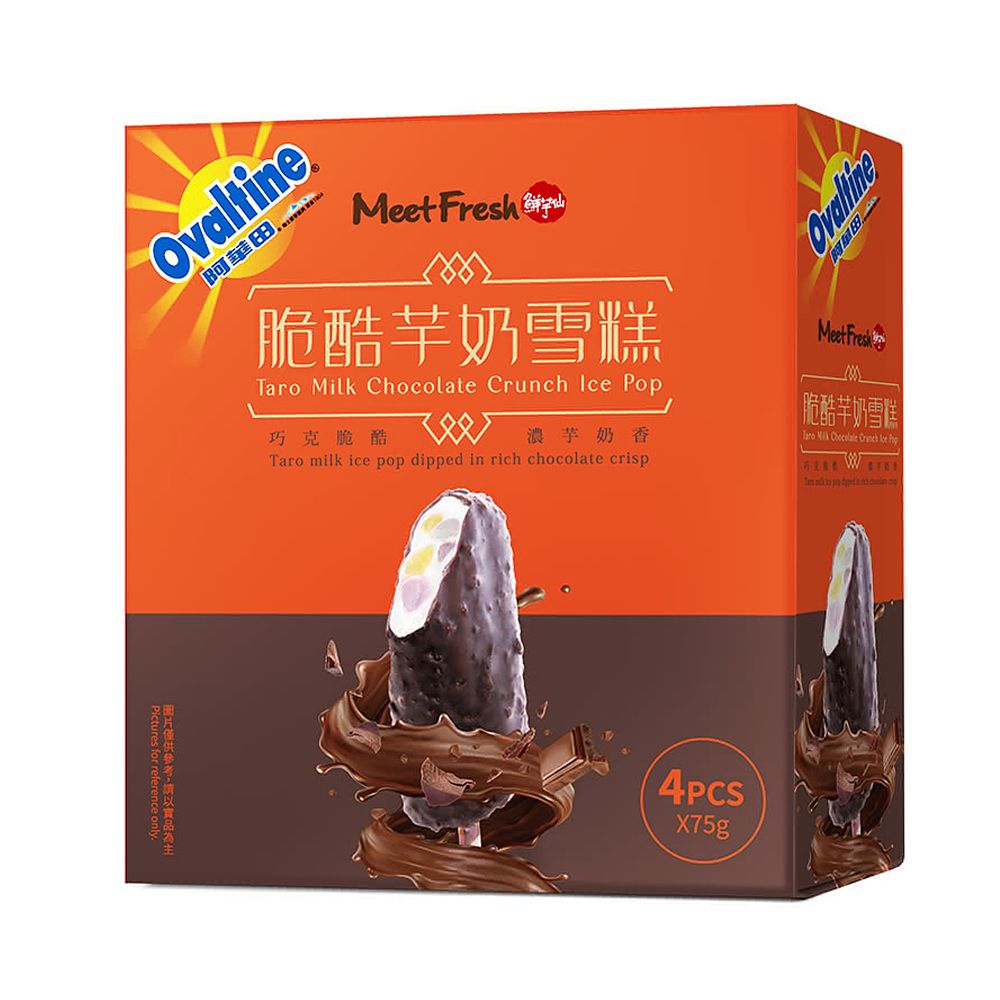 由鮮芋仙與阿華田的聯名強品「脆酷芋奶雪糕」,芋香伴隨濃醇奶香,其中還有芋圓內餡的Q彈口感,再加上口感十足的麥芽脆酷力,帶有雙重絕佳風味。