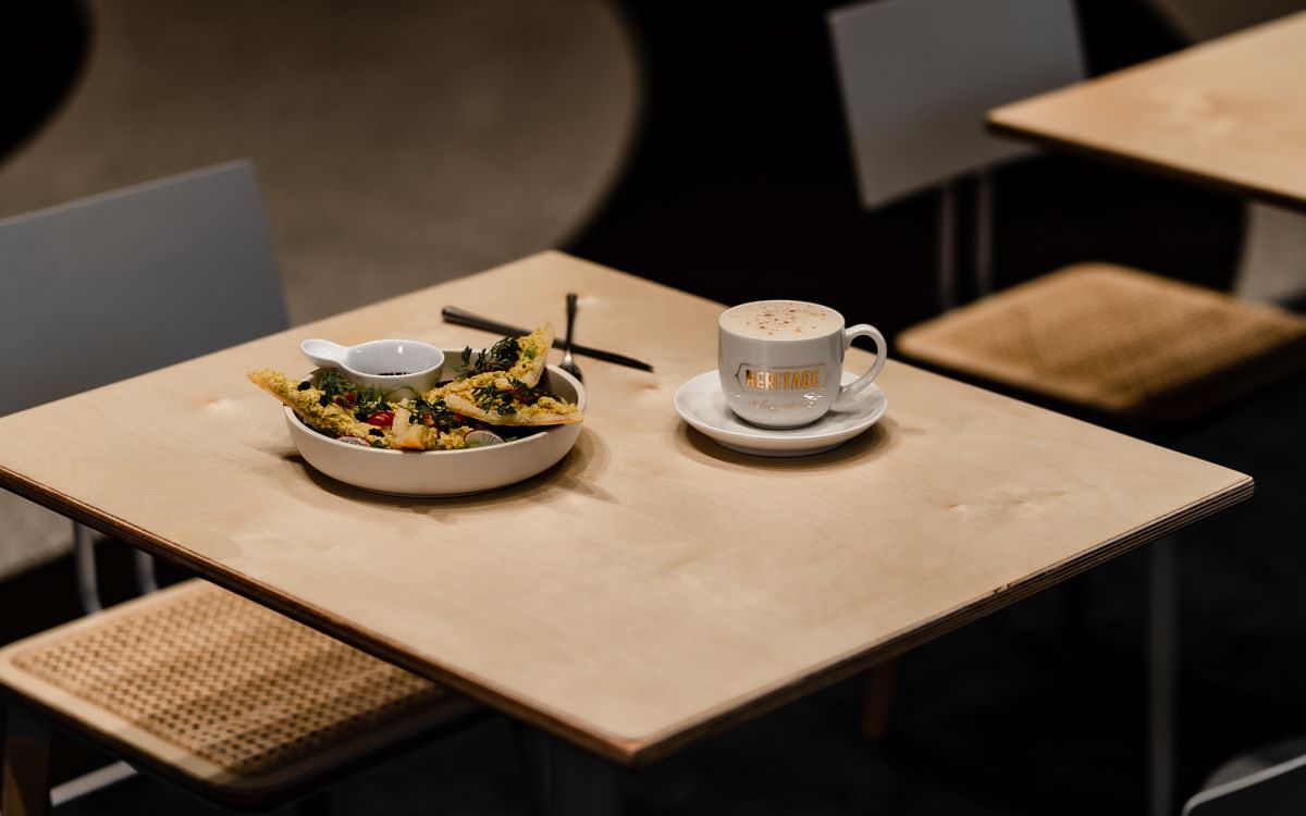 座落在 BELLAVITA B1的 Heritage 美式咖啡烘培坊,在餐點飲品的菜單設計也不同於漢口店,有相對多的限定口味在這裡提供,滿足附近上班族、喜愛追求新穎的時尚族群。推出的「咖哩雞開放三明治」,以低溫舒肥雞肉的料理方式,加入異國咖哩風味,帶出三明治的不同味蕾體驗;濃郁的「香料起司蛋糕」,將各式各樣的香料元素混入重乳酪,展現讓人驚艷的味覺新世界;將美國經典波士頓奶油派結合日本森田園宇治抹茶利休,打造出柔軟濕潤、香氣四溢的「抹茶波士頓派」,必定引起抹茶愛好者的注意;又或是將經典口味再翻轉,Heritage 招牌「肉桂捲」再度升級為使用自然放牧雞蛋,熱呼呼的捲加上一球香草冰淇淋,滿足甜點控的不同需求。