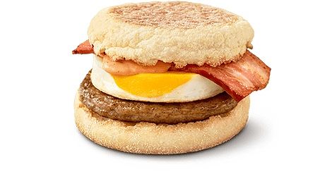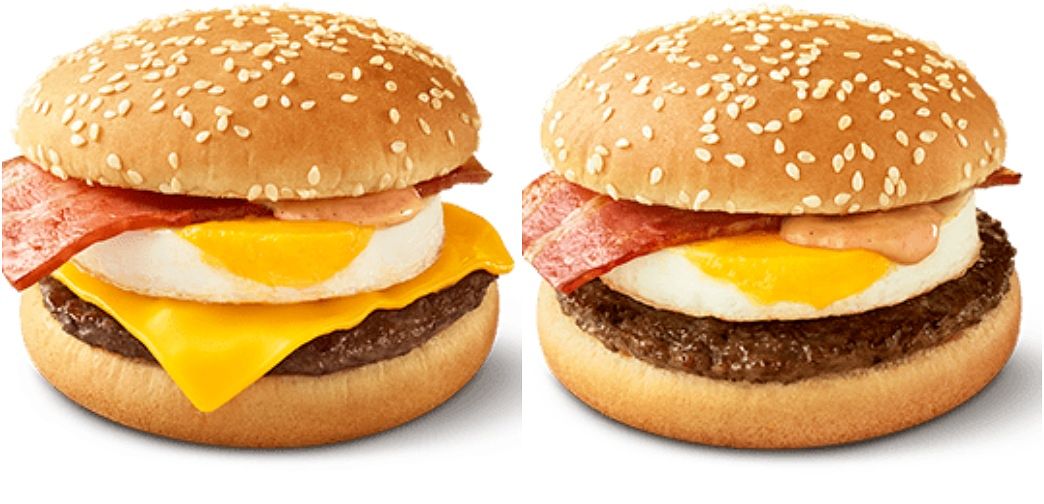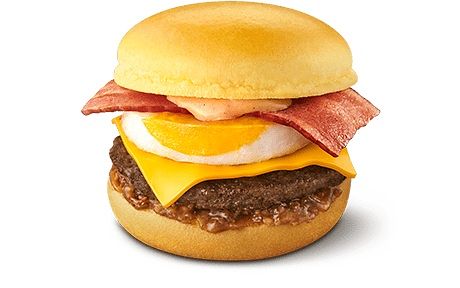 早餐時段的月見滿福堡同樣好評回歸!鬆軟豬肉排搭煙燻培根,加了番茄風味醬汁的月見風味更是特別!