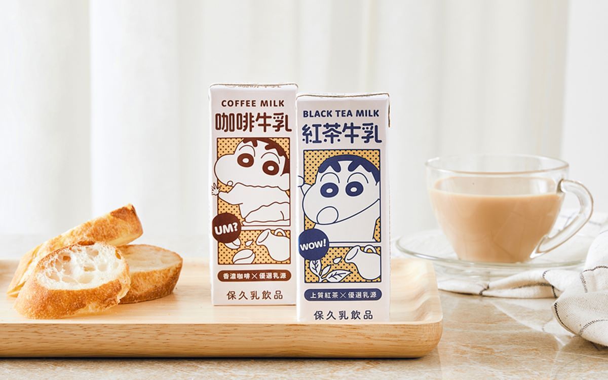 《蠟筆小新紅茶牛乳》以阿薩姆及錫蘭茶葉混合,加入優選乳源,完美融合出微甜香氣,一口喝下猶如置身日本旅行,享受日式午茶氛圍。《蠟筆小新咖啡牛乳》以香醇咖啡mix牛乳,滑順濃郁比例,就像在日本泡溫泉後來一瓶牛乳,令人感受滿滿幸福。兩款都是保久乳,野餐、下午茶或是出遊旅行都非常方便攜帶,大小朋友隨時都可以一起補充可愛能量!