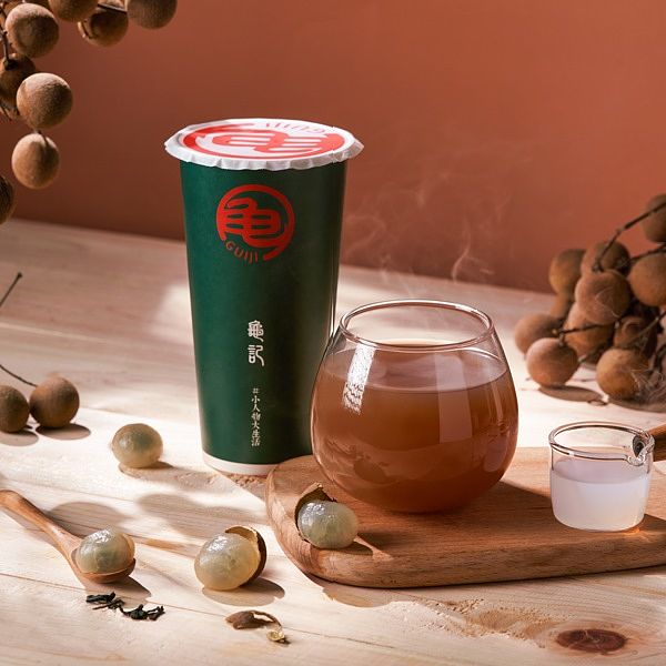 2022年除了7月份初夏時推出的限量「玉荷包茶王」外,緊接著9月再推出一款嚴選龍眼,它雖有著樸實老派的咖啡色帶粉殼的外表,剝開後,內含半透明圓滾滾果肉,咬下後是香氣Q彈的口感,讓整個口腔充滿龍眼的清甜香氣,龜記首創第一間使用特殊工法將嚴選過的新鮮龍眼榨成汁,再搭配茶香甘醇、芬芳幽雅、入喉回甘極佳的紅水烏龍,一起調合出全台獨家的「龍眼紅烏」。