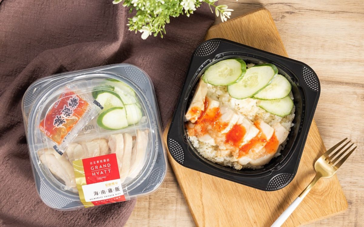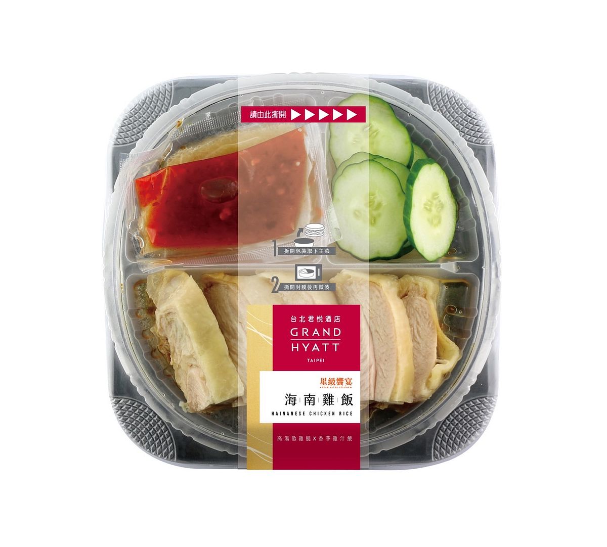 圖片來源:7-ELEVEN 新品中另一亮點則是大眾所熟知的「君悅-海南雞飯(售價109元)」,7-ELEVEN獨家開發上層雞肉可拆開冷食、下層米飯可微波加熱的「雙層吃法」能維持雞肉軟嫩口感同時讓高湯秘製雞飯更具香氣,製作過程更是超商鮮食少見,嚴選在地雞肉,標竿飯店作法以高湯、多種香料熬煮調味後,立即冰鎮鎖住雞汁鮮度,而後全程低溫配送至門市,搭配主廚指導道地薑蓉、辣椒醬,單純美味讓人意猶未盡。
