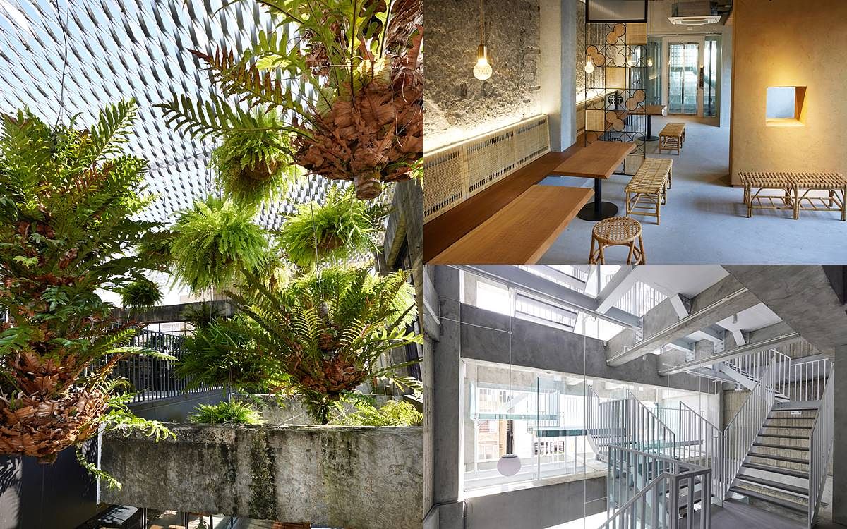 「南埕衖事」自大廳植生牆到 5 樓「南埕‧天光」垂直的景觀規劃,加上頂棚結構特殊光影,在市中心坐擁大片綠意,讓吃冰成了優雅又愜意的享受;室內保留原有大理石和磨石子地面,加入泥牆、藤編、鐵花窗…等元素,與前衛俐落的「衖 Lòng Stairs」對比呼應,創造內外反差,形成新、舊對話的有趣空間。