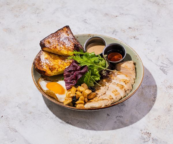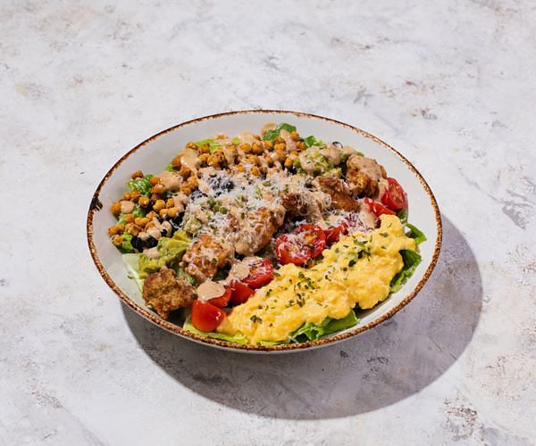 圖片來源:貳樓 以健康、低負擔為出發點,貳樓微風南山店在白肉餐點調高了比例,推出多道微風南山店限定款餐點,其中《彩虹炸雞胡麻沙拉》NT350以綜合生菜為底,堆疊嫩蛋、酪梨醬、鷹嘴豆等蔬菜丁,搭配酥炸雞塊淋上胡麻醬,色彩繽紛、爽口不油膩,營養價值更是滿分!
