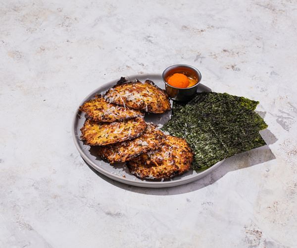 圖片來源:貳樓 另外喜愛海鮮的饕客也有新選擇,新研發的《手作花椰餅佐辣味海卵醬》NT230將花椰菜米加入火腿丁手作成餅,金黃焦香、口感多元,沾上獨家調製的辣味海卵醬,鮮甜中帶出大海鮮味,帶給饕客全新的味蕾享受。