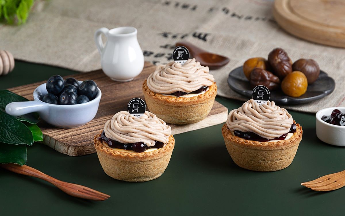 此外,和栗(栗子)是日本秋天的當季食材之一,秋天栗子特別飽滿香甜,每逢秋天栗子的商品都會成為貨架上熱銷商品,而民間有句諺語,「七月七秋涼,八月蕃薯芋頭娘。」秋天是芋頭成熟的季節,芋頭產期從中秋過後進入盛產期,因此很多芋頭美味也紛紛出籠。PABLO也順著運用節氣當令的食材法則,再次聯手歐洲百年果餡大廠「比利時愛迪亞ALDIA」,全新推出每顆售價90元的「PABLO 栗子藍莓迷你起司塔」秋季限定甜品美食,將扎實飽滿的藍莓果餡結合入秋之際常食用、充滿溫潤性格的栗子食材元素。此外,在粉絲千呼萬喚下號稱零負評、每顆售價528元的「芋頭麻糬鮮奶酪起司塔」,也再度登場,是芋泥控經典不敗的口袋名單,享受每一口都能吃到芋頭顆粒滿滿的極致快感。