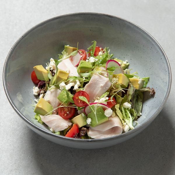新鮮酪梨塊、細嫩的舒肥雞肉與生菜沙拉,淋上帶有堅果香氣的第戎芥末油醋,再佐以綿密細緻的菲達起司提味,多種滋味層次環繞口中,簡單、清爽無負擔,同時又有飽足感。
