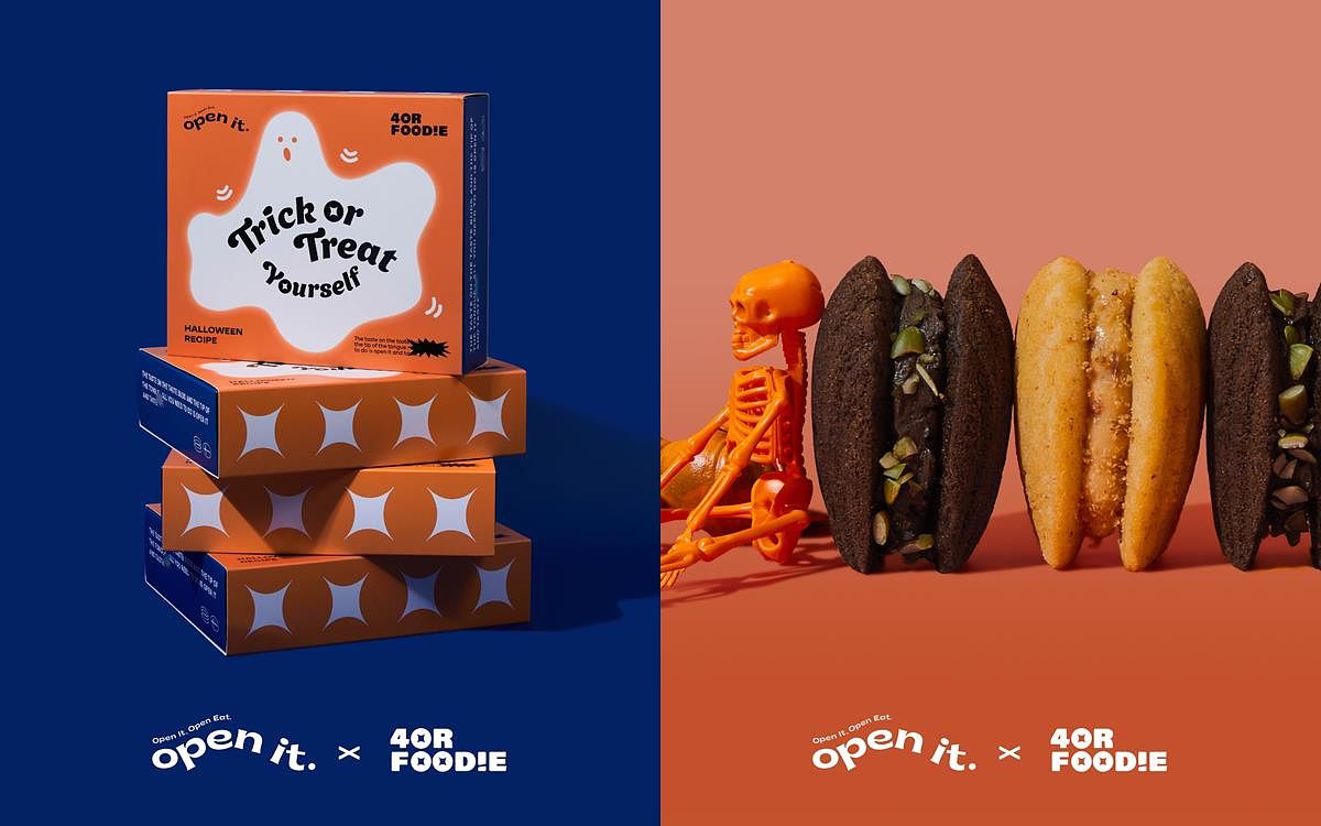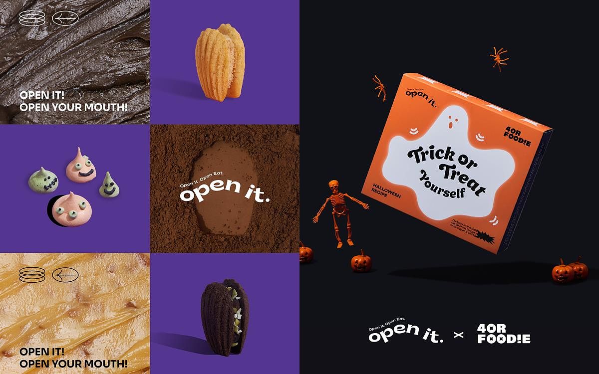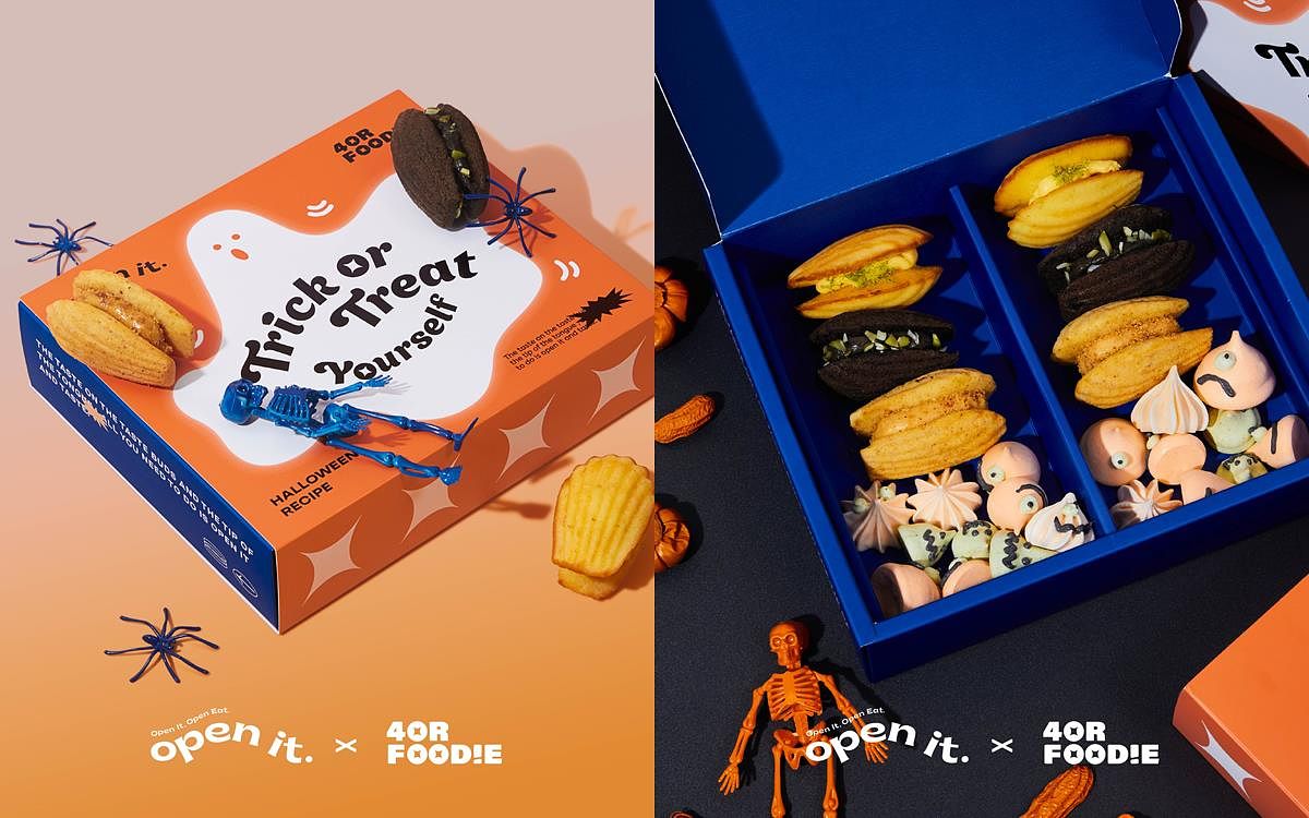 人氣瑪德蓮專賣品牌open it. 甫上市以來即受到各界極大的關注,近期更受到IG美食界的第一把交椅4foodie 的親睞,指名成為跨界聯名合作對象,就要在萬聖節帶給粉絲們驚喜!擁有近45萬追蹤數的4foodie 自2015成立至今,不斷帶給大家全新的服務與體驗,除了線上分享介紹眾多美食與餐廳之外,線下也舉辦了極具盛名的萬人聖誕市集,這次4foodie 特別看中open it. 的創意與品味,進而聯手推出萬聖節限定禮盒,保證無雷的全新口味,即將席捲派對甜點清單。