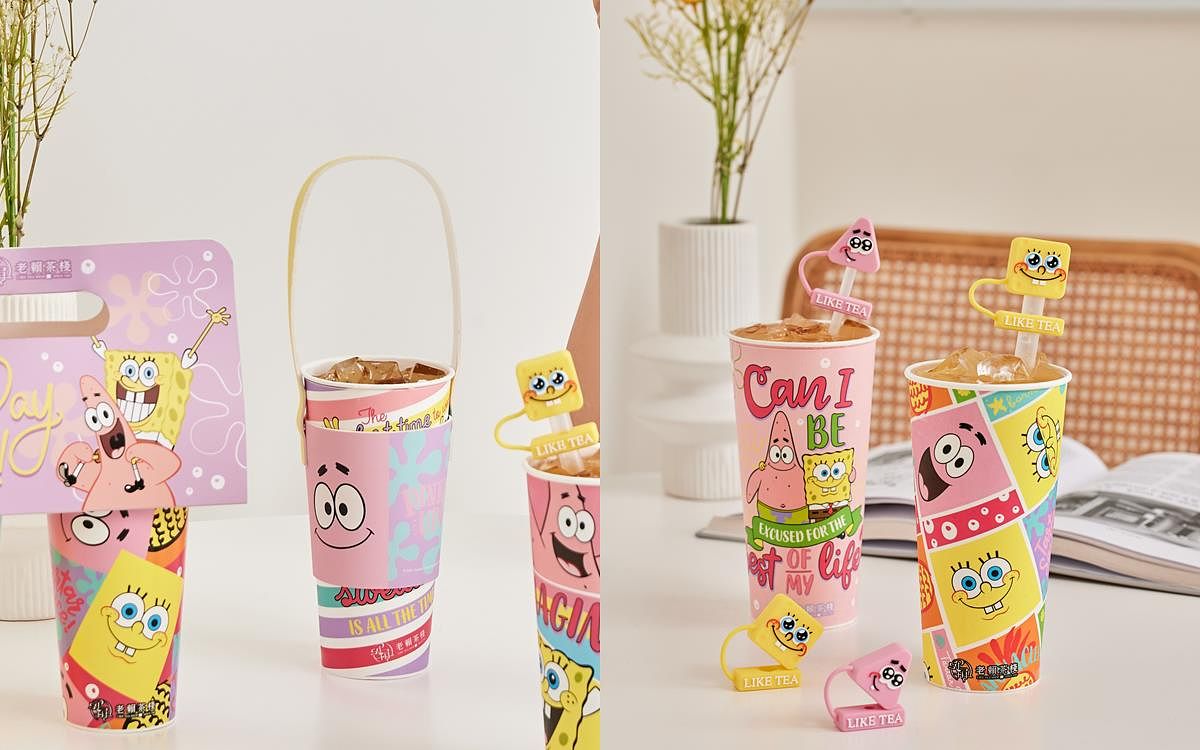 42年老字號茶飲「老賴茶棧」聯名「是誰住在深海的大鳳梨裡?海綿寶寶~」比奇堡大明星即將在10月27日於老字號古早味手搖飲品牌「老賴茶棧」全台108間門市霸氣登場,網友期待度爆表,首波推出消費滿100元加購周邊商品,包含海綿寶寶、派大星造型吸管套、購物袋、抱枕及飲料提袋,每間分店僅限量50份,售完不補。
