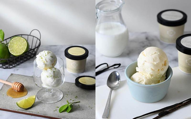本次推出三款冰淇淋風味,蜂蜜檸檬雪酪選用creammm.t 明星商品「家常檸檬塔」相同的台灣青檸、搭配天然蜂蜜為基底,佐以適量的乳品調合酸度,最爽口的雪酪質地,表現出青檸的特色。香草冰淇淋則選擇巴布亞新幾內亞產區的大溪地香草品種,在冰淇淋裡,細細黑黑的天然香草籽清晰可見,箇中風味就自帶濃郁花果及大地森林氣息,尾韻更帶出牛奶糖的香氣,令人回味無窮。