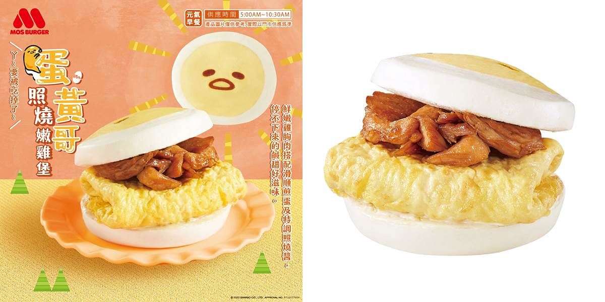 限量販售的「蛋黃哥照燒嫩雞堡」售價75元,以荷包蛋造型的兩片式饅頭,烙印上蛋黃哥最經典的表情,再將國產雞胸肉沾上經典蜜烤醬,與煎蛋一同夾入饅頭,品嘗時帶有淡淡的奶香味,配上口感層次豐富的餡料,凸顯出獨特的照燒風味,令人驚艷。這個冬天就讓美味的蛋黃哥陪伴消費者渡過溫暖的朝食時光。