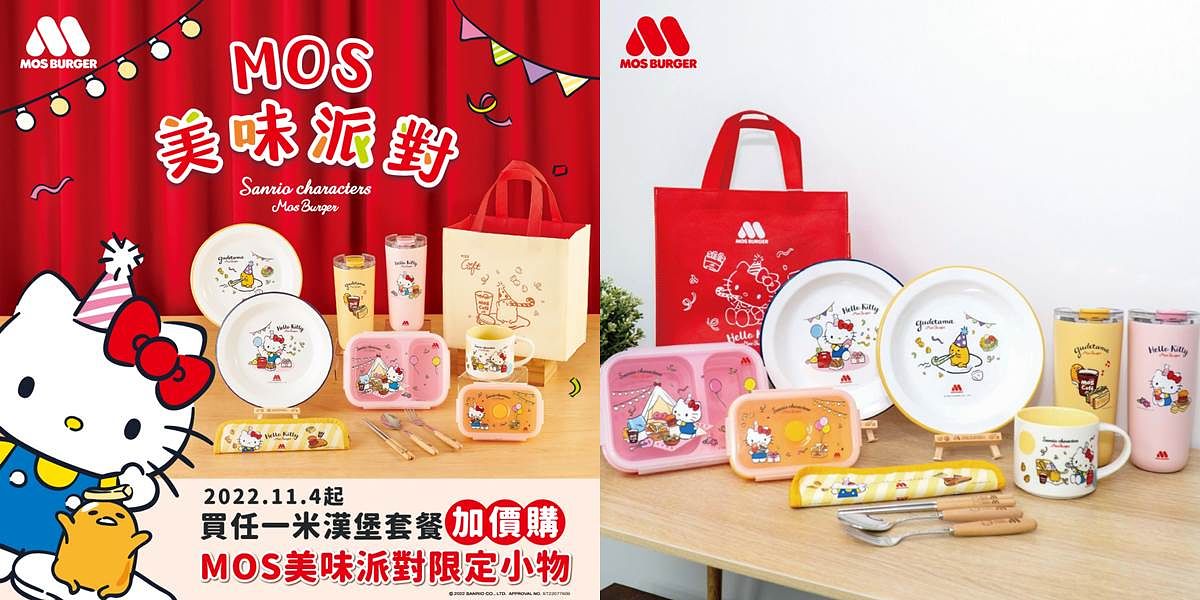 即將邁入溫馨的感恩節及聖誕佳節,是親友歡聚的時刻。摩斯漢堡今年度以MOS美味派對為主軸,與三麗鷗聯名合作於 11月4日推出一系列「Hello Kitty」與「蛋黃哥」系列商品,含餐點「日出壽喜燒雙牛堡」、「日出壽喜燒雙牛珍珠堡」、「蛋黃哥照燒嫩雞堡」及可愛實用的聯名商品,凡消費指定商品最低79元就能加購派對風格相關聯名商品。摩斯漢堡別出心裁且隆重的推出企劃聯名,包括商品包裝都帶有可愛的三麗鷗明星,廣邀消費者來摩斯漢堡與最夯的明星們一起用派對歡慶歲末佳節。