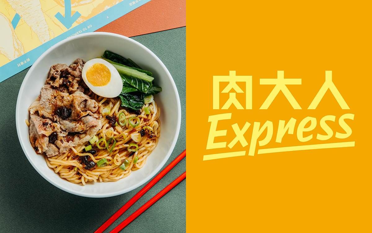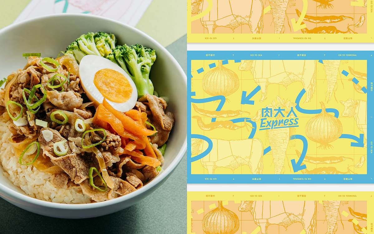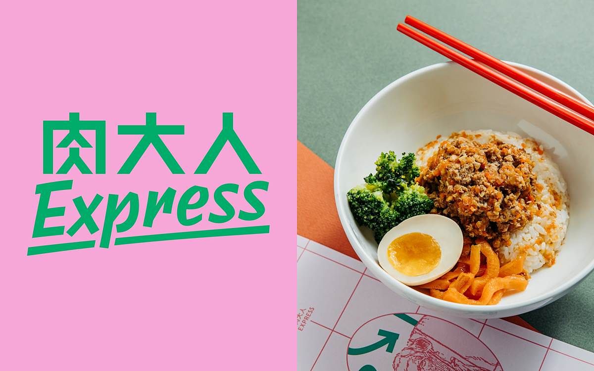 以2015年肉大人肉舖火鍋的原始樣貌為出發點,主品牌肉大人Mr.Meat 跳脫細節及副標,保留中英文品牌名稱,將字體收整加以凸顯。支線品牌肉大人快餐Express主要供應迷你火鍋及家常便飯,沿用品牌logo字體外,使用繽紛色彩融入箭頭指向,表現速度與活力,希望呈現品牌活潑又自成一格的深刻印象;再進一步提取兩個品牌的英文字母X及M,構成精簡俐落的專屬圖騰印花,為品牌視覺增加豐富延展性,同時呼應肉大人快餐Express聚焦品牌拿手好菜,以明瞭清晰的招牌菜色,提供顧客能享受便利餐食,但不意味需要因此向美味妥協的餐食服務。
