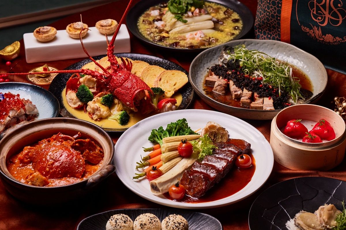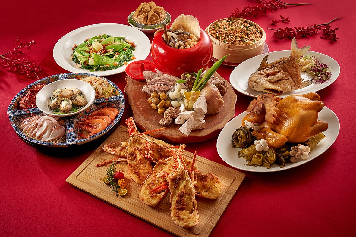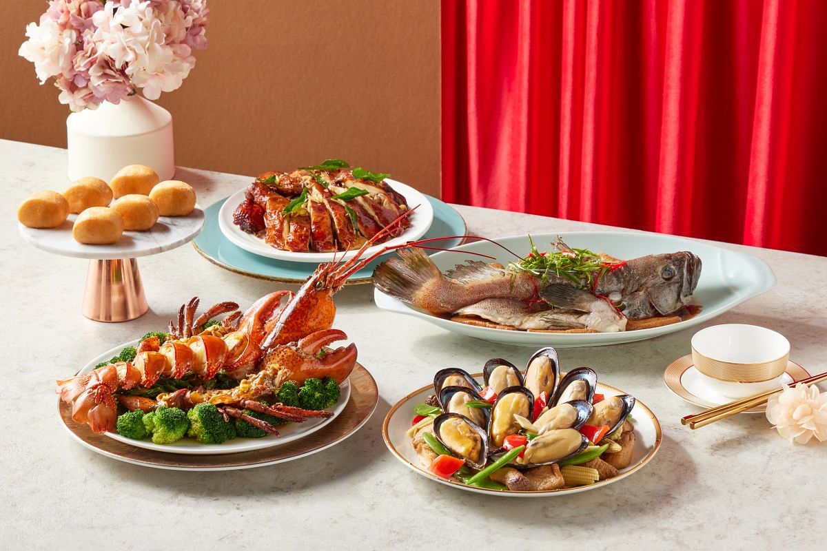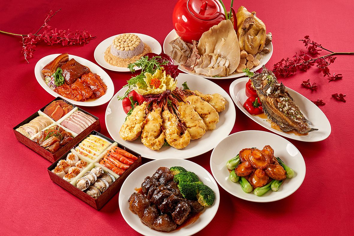 結合新派粵菜與精緻港點的時尚中餐廳玖尹,嚴選海陸頂級食材,以粵式料理為本,融入台菜、江浙等多元手法及創意,並且貼心考量小家庭需求推出六人份『鴻運年菜外帶套餐』,共十道料理熱騰現做,匯集鮮活龍蝦、南非鮑魚、烏參、牛小排等上選海陸食材設計外帶年菜套餐,含四道拼盤共十道料理,返家復熱即可享用。