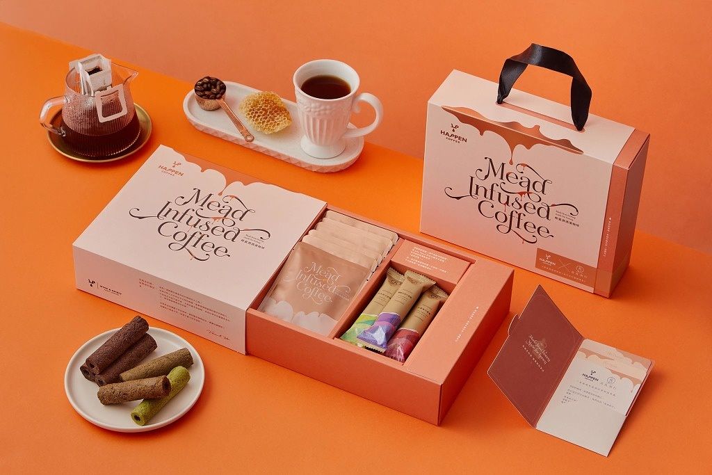 內容物:蜂蜜酒酒漬咖啡掛耳包10g x 6、青鳥旅行真巧系列蛋捲 | 巧克力 x 3.伯爵 x 1.抹茶 x 1.鐵觀音 x 1